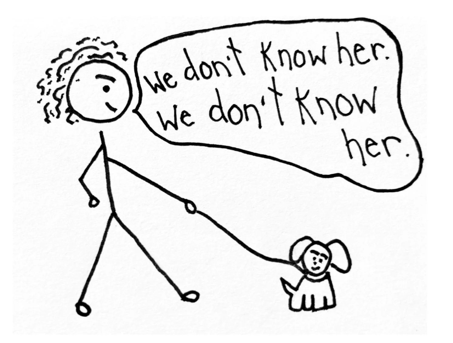 Stephanie turned to her dog still not responding to me and said, “We don’t know her. We don’t know her.”